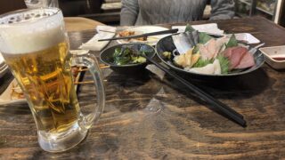 うんうん お昼からビールでカンパ~イ! んでお刺身食って、あれ食ってこれ食ってなに食ってハイボール飲んで...