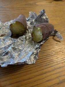 遠赤外線効果でねっとりした焼き芋の出来上がり。