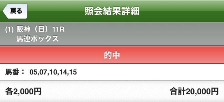 馬連で2,000円買ってたので31,400円です、5点ボックスだけどね、トータルはちょっとだけプラス。