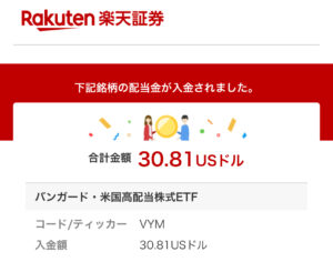 もう一丁こちらも大人気⁈ 高配当銘柄ETF「バンガード・米国高配当株式ETF」(VYM)から配当金。