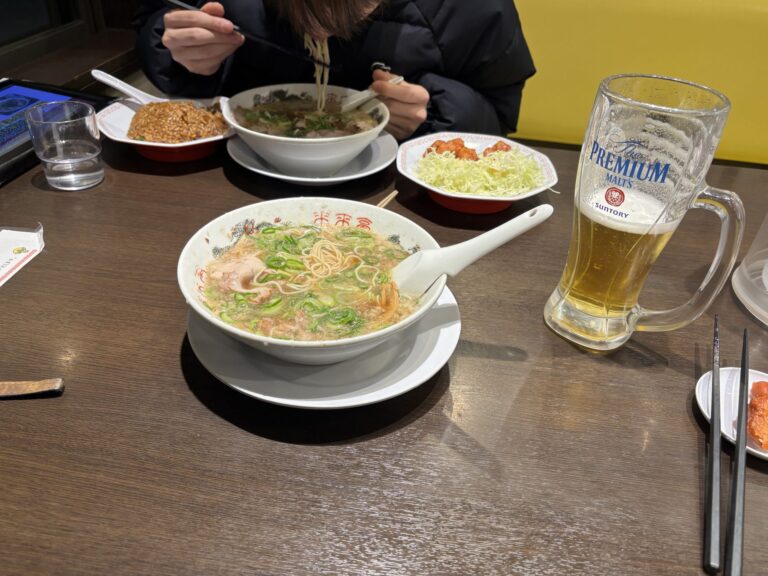 んでワイはのんびりビールを飲みながらラーメン食ってる。
