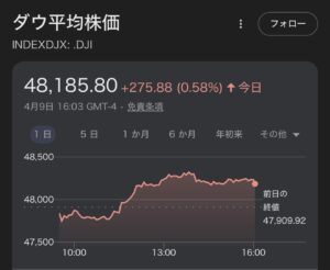 続伸だ続伸、米国株が元に戻りつつあるね(インドやヨーロッパは知らん)ダウ平均株価も48,000ドルまで回復している。