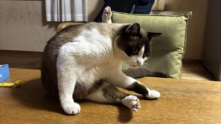たま~に登場する我が家のアイドルイワシちゃんです、今日も元気に毛ずくろい(毛並みを整えております)