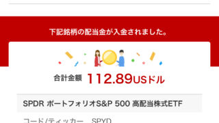 高配当銘柄 【配当金】SPDRポートフォリオS&P500高配当株式ETF 112.89ドル 入金 大人気 ⁈ の高配当株式ETF「SPDRポートフォリオS&P500高配当株式ETF」(SPYD)から不労所得の配当金が入金。 入金額は112.89ドル、日本円で約17,000円、ビール買います(笑) もう一丁こち... 2025.09.27 高配当銘柄